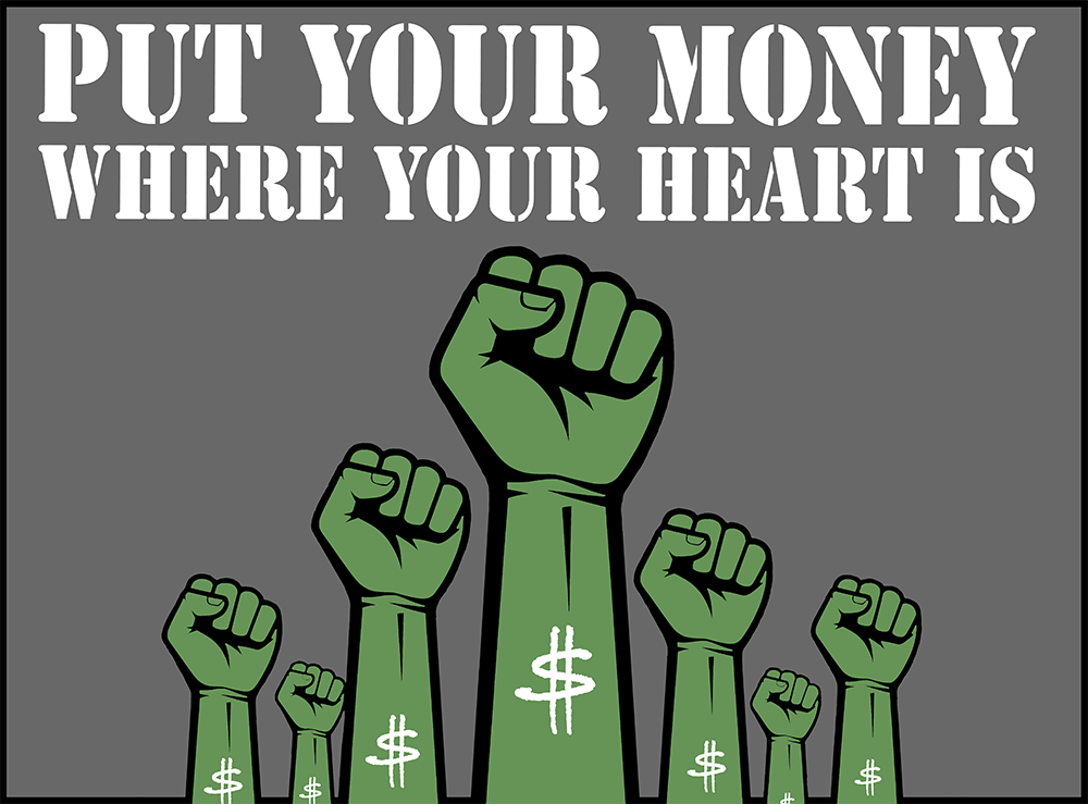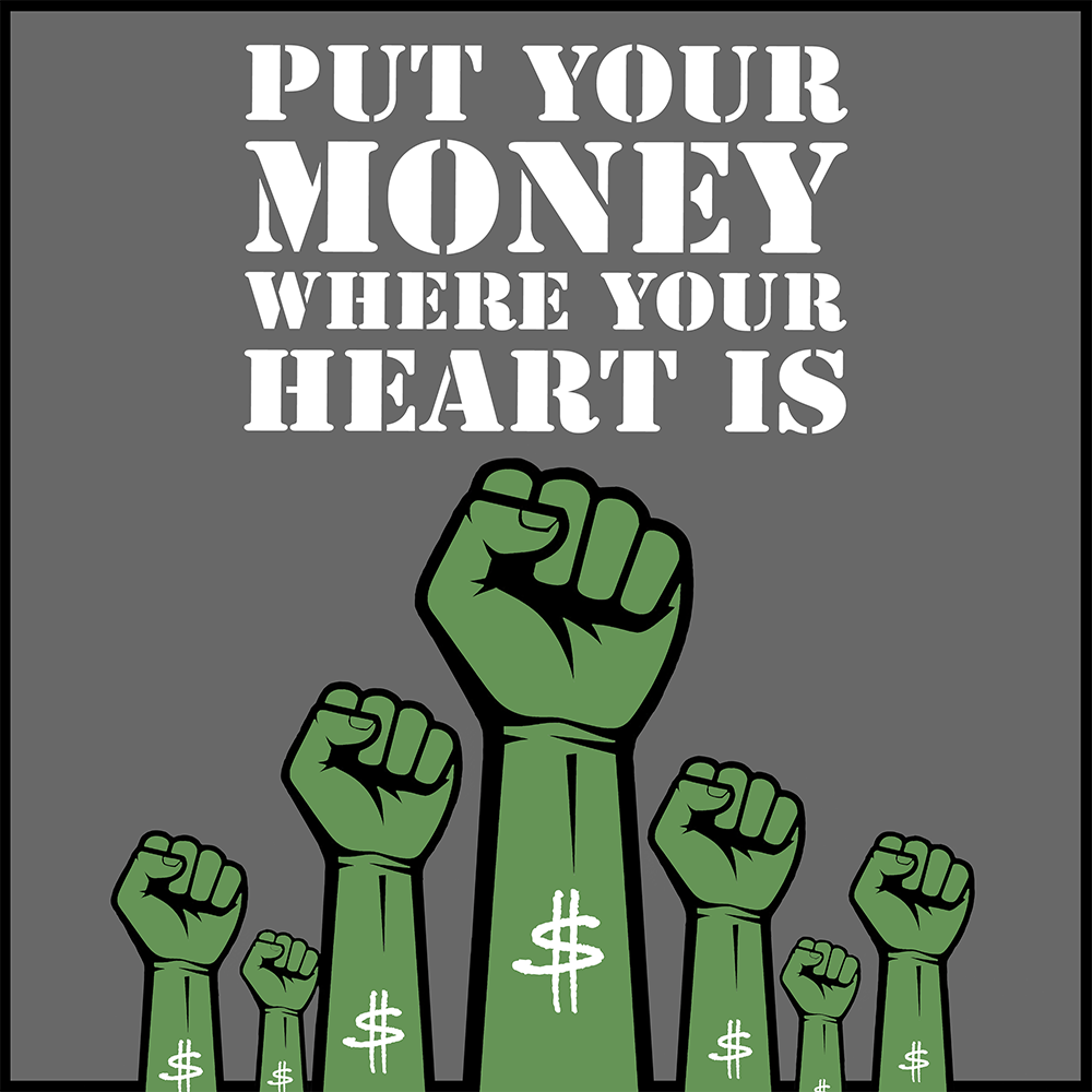 Your wallet is one of the most powerful tools you have to create change. This design is a bold call to action for the activists, the idealists, and the changemakers who vote with their dollar every day. It’s a statement that where you spend your money matters. Fund the future you want to see.